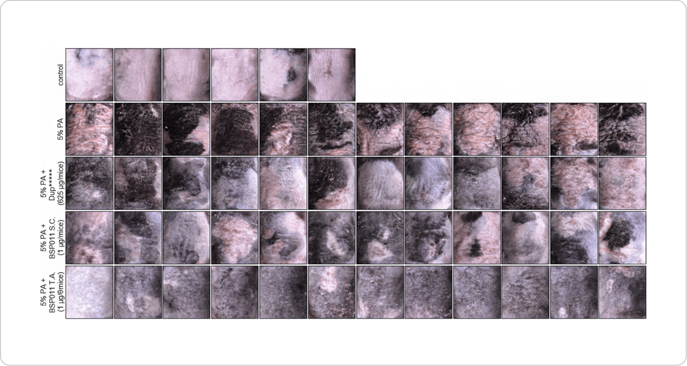 | 군(Group) | Untreated | Dup***** | BSP011 (S.C.) | BSP011 (T.A.) |